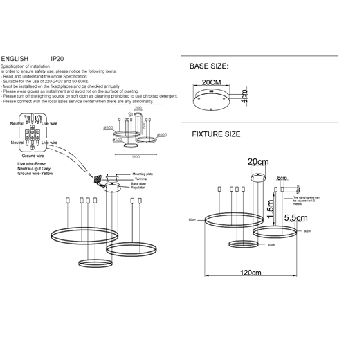 Люстра подвесная светодиодная с тремя черными кольцами и пультом управления Ring Horizontal