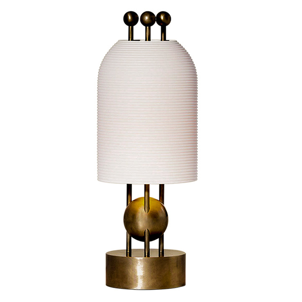 Настольная лампа в виде фонаря с белым фактурным абажуром Echoes of Light Белый Латунь в Омске | Loft Concept