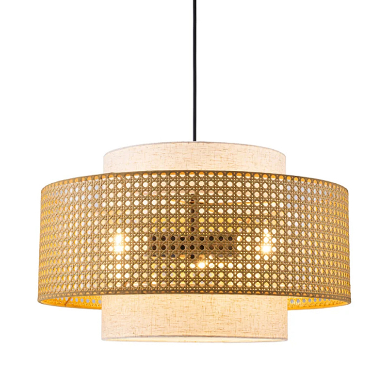 Подвесной светильник с декоративным поясом из плетеного бамбука Biuloggicu Бежевый Черный в Омске | Loft Concept
