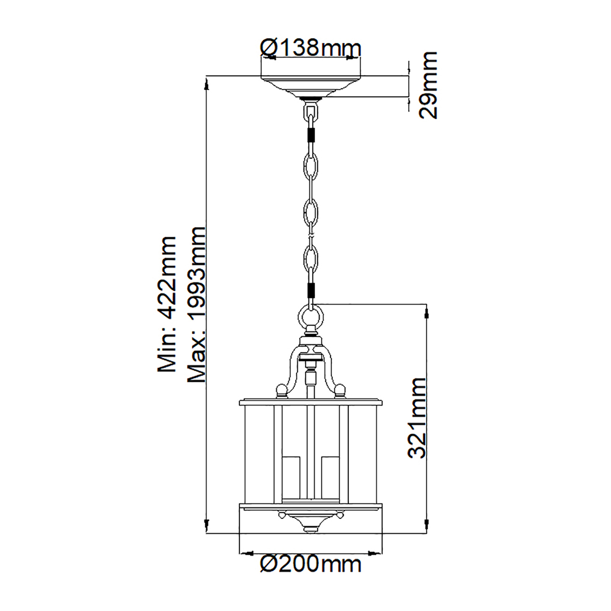3 лампы - мин. - макс. длина: 42.2 - 199.3 см. Д20 х В32.1 см.
