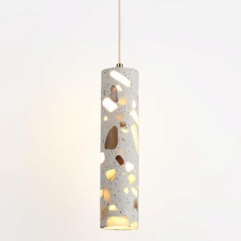 Подвесной светильник с цилиндрическим белым бетонным плафоном Terrazzo Light