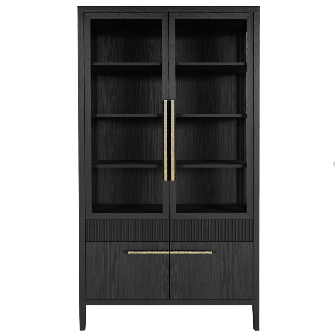 Витрина Primo со стеклянными фасадами и буфетом шпон Черный дуб Черный Золотой в Омске | Loft Concept